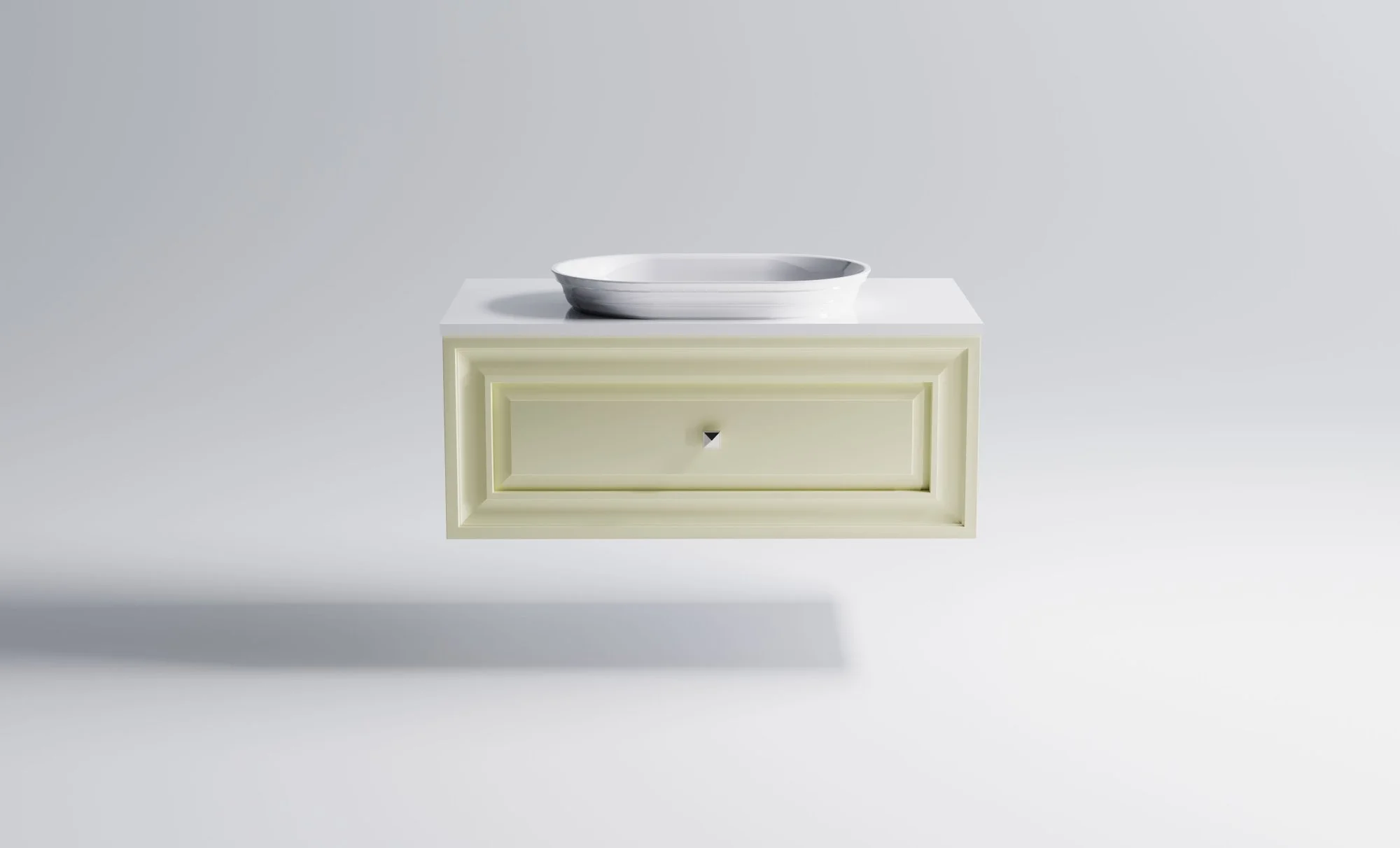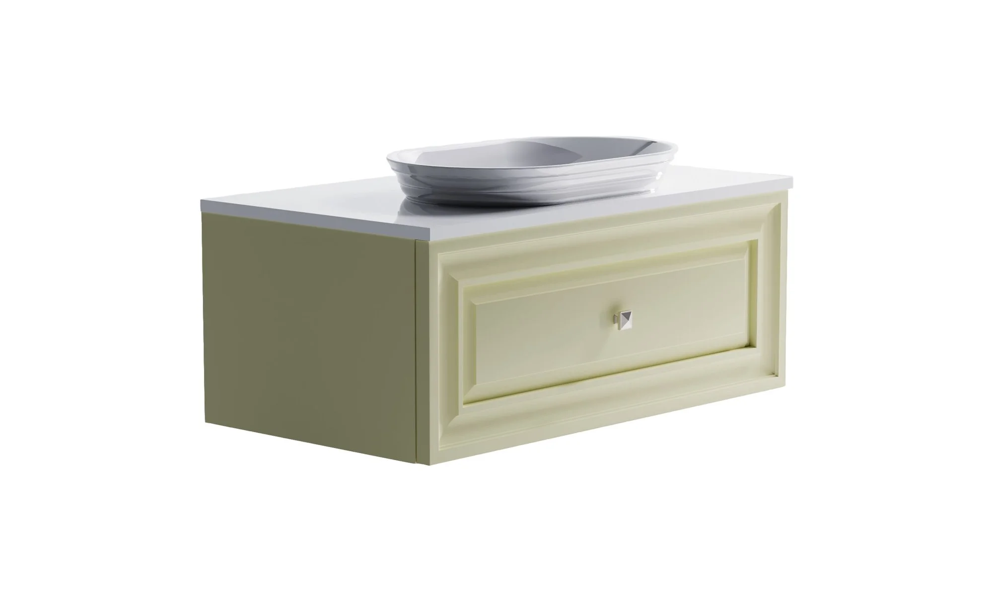 Тумба под раковину Шарм 900 с 1 ящиком с вырезом бежевый (RAL1013 матовый) + Столешница "Шарм" 900 мм + Раковина "Шарм"