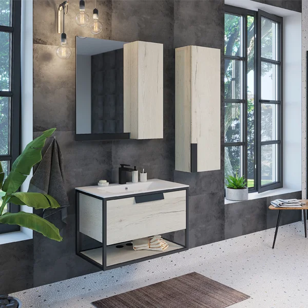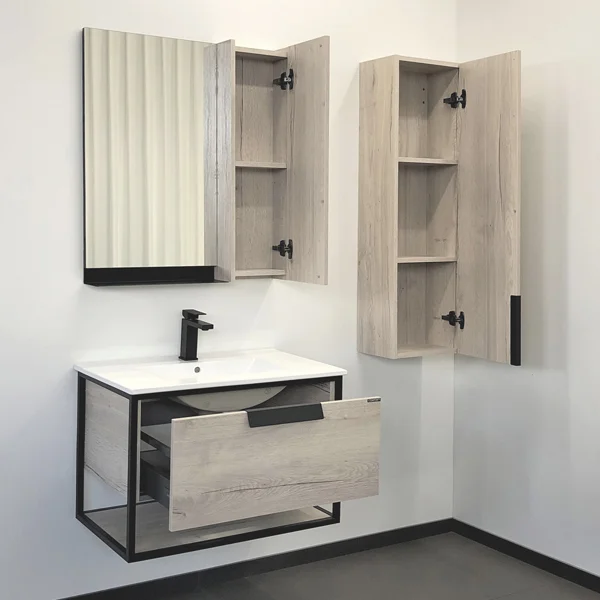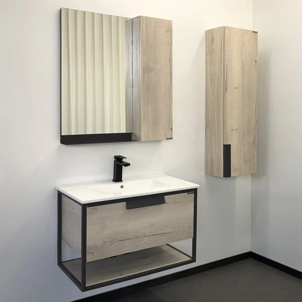 В основе тумбы - каркас из стального профиля окрашенный эмалью цвета графит. Керамическая раковина Comforty 75E из санфарфора.