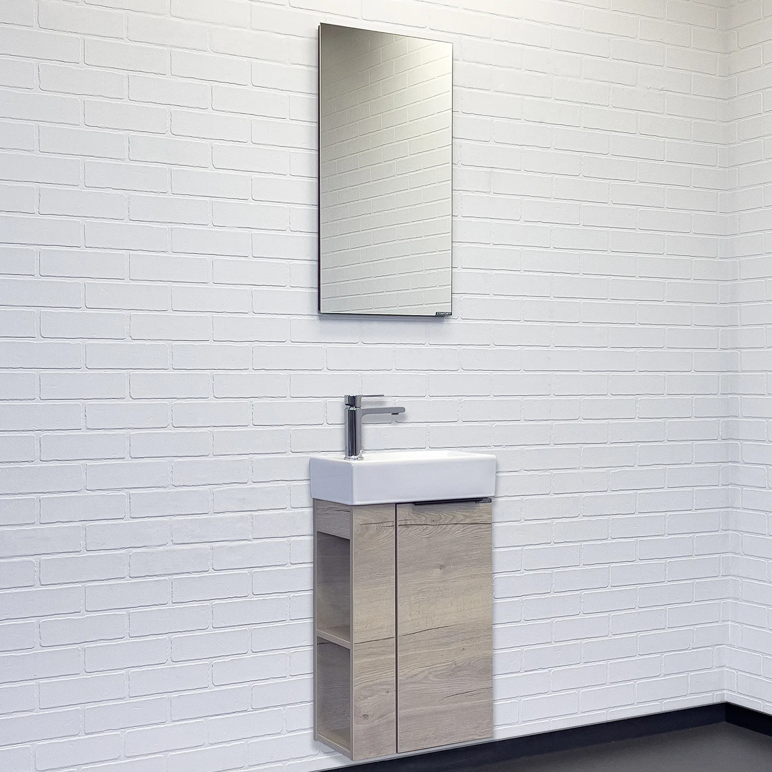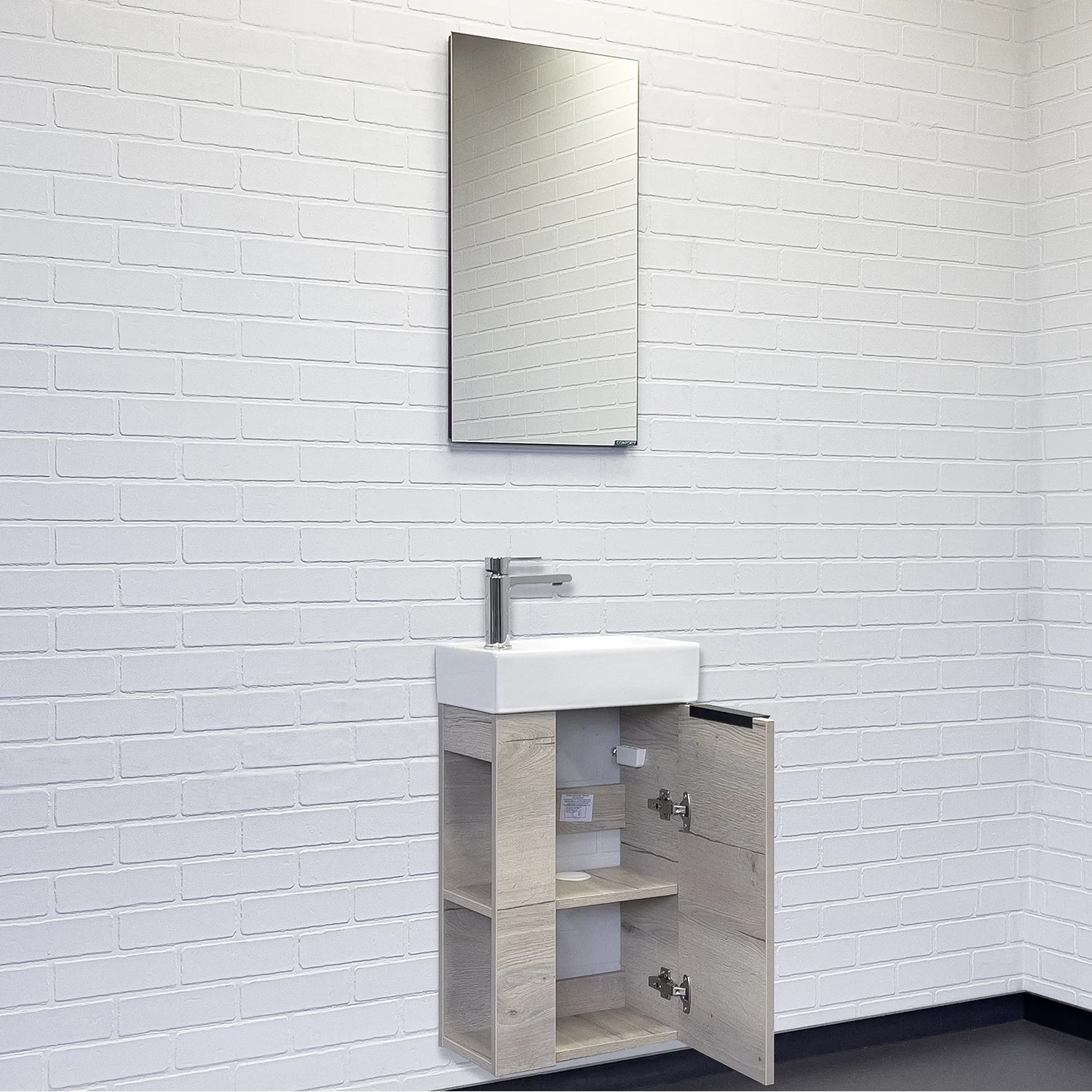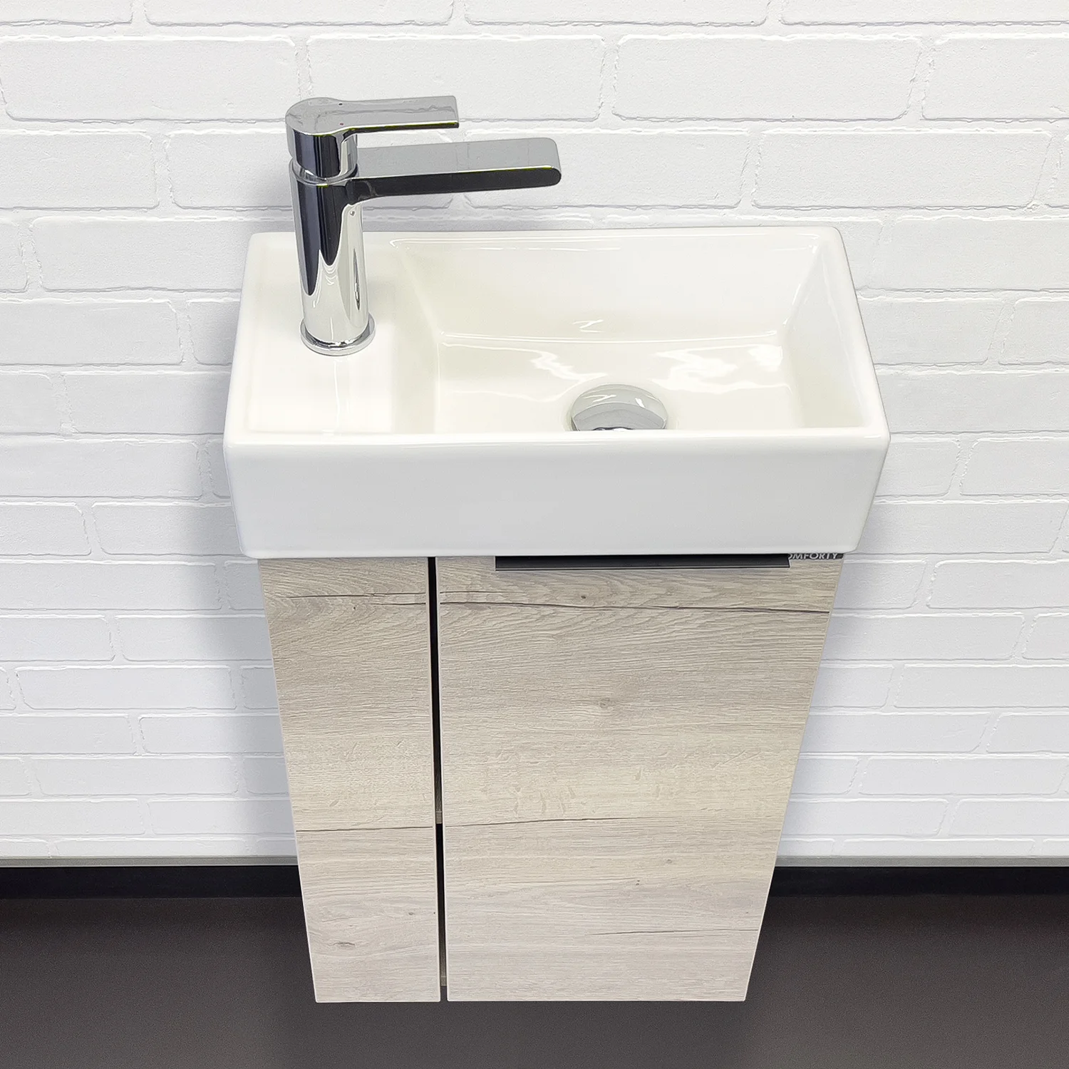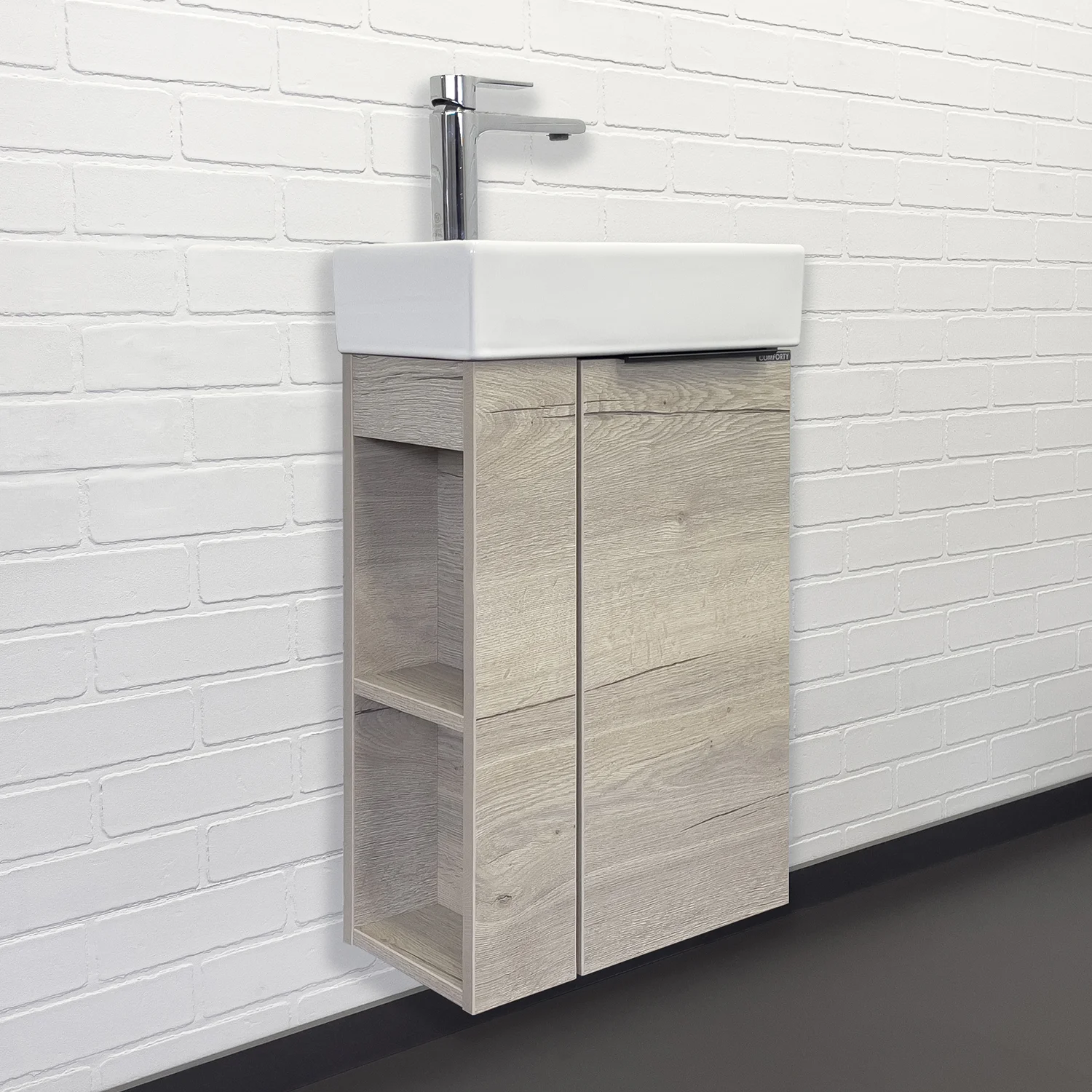 Компактная подвесная тумба-умывальник Comforty Матэ для небольших санузлов. Фасад и корпус тумбы изготовлены из влагостойкого ДСП в декоре «дуб дымчатый». Этот декор при прикосновении дарит ощущение натуральной древесины. В комплекте асимметричная раковина с отверстием под смеситель сбоку. Раковина глазурована со всех сторон, поэтому может быть установлена как в правом, так и в левом варианте. На левом торце тумбы - полки.