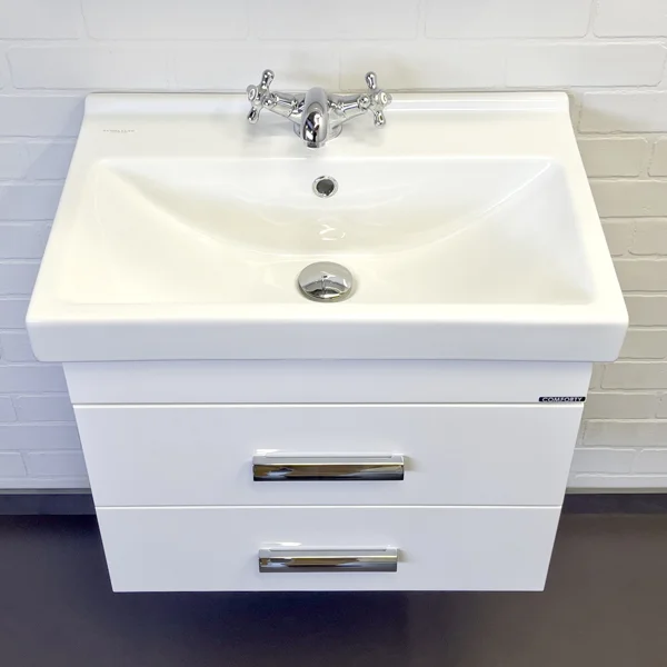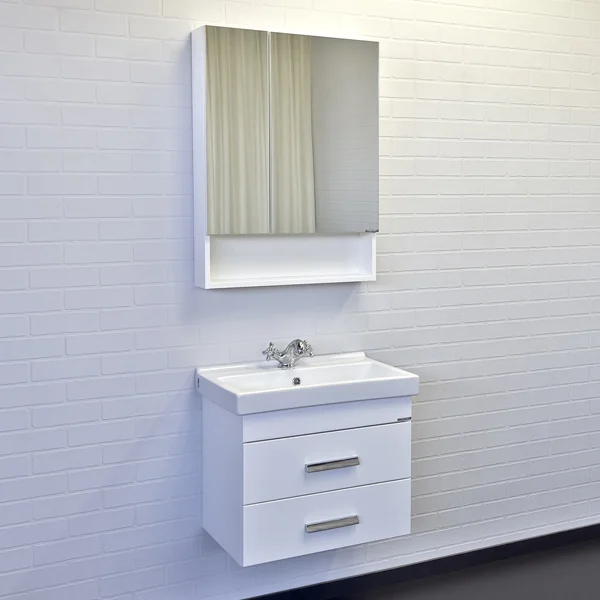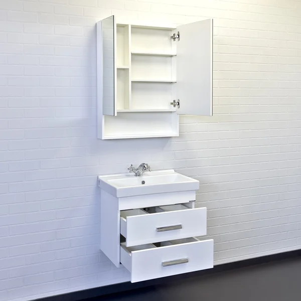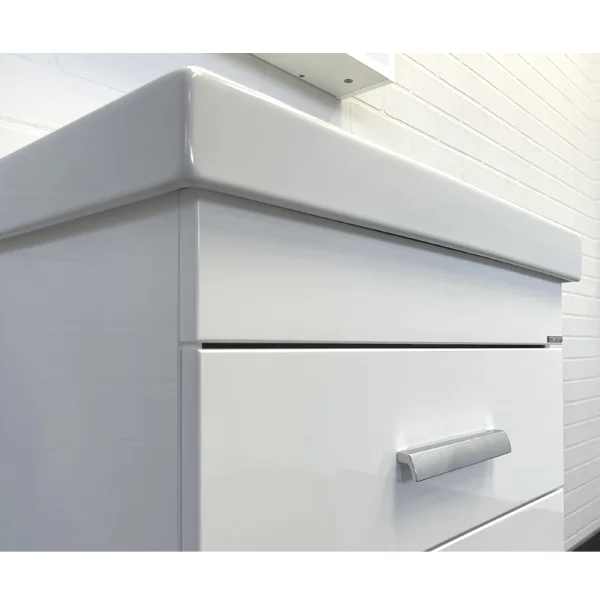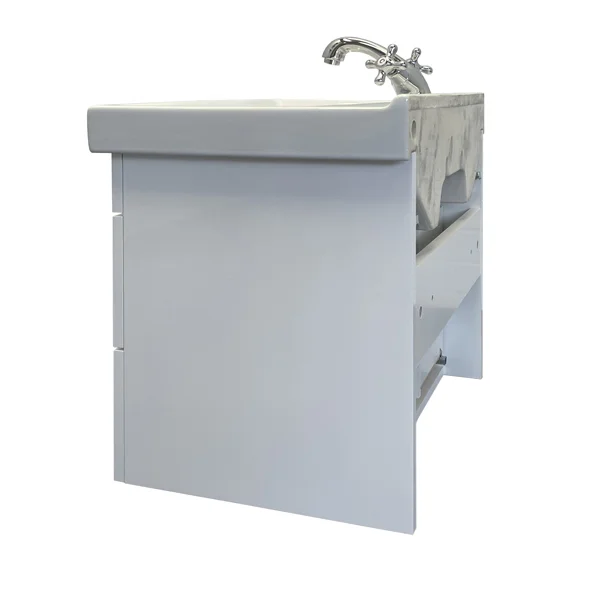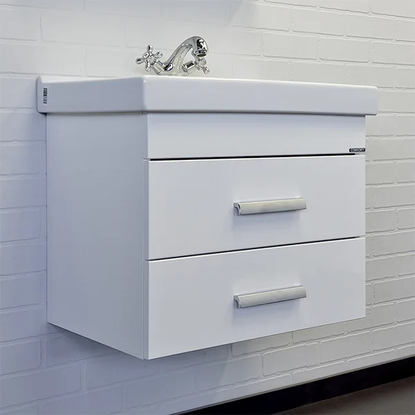 Подвесная тумба с двумя выдвижными ящиками, оснащенным системой плавного закрывания. Тумба подготовлена для подключения водоснабжения снизу.