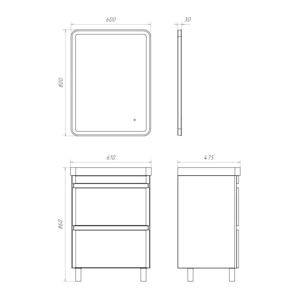 Габариты ШхВхГ: 610х860х475 мм