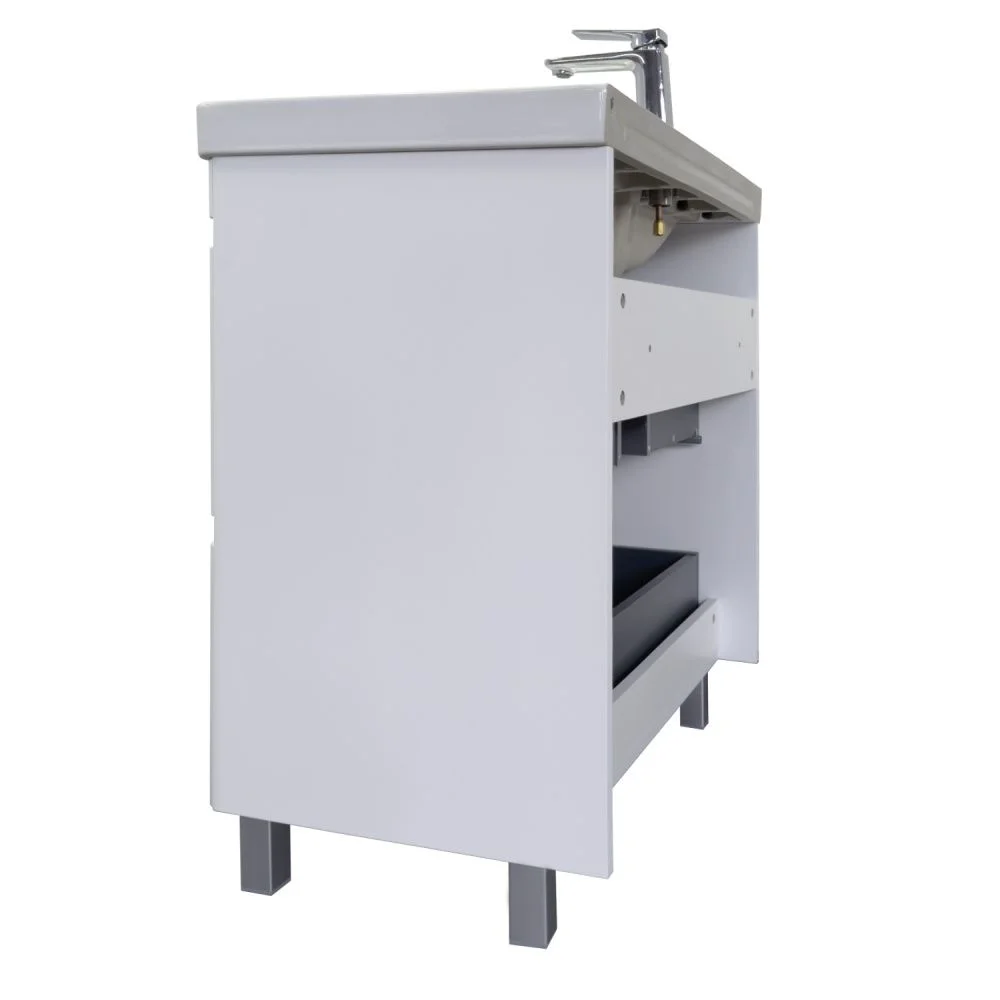 Корпус и фасады тумбы из МДФ окрашены белой матовой эмалью.