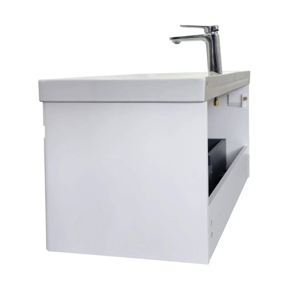 Корпус и фасад тумбы из МДФ окрашен белой матовой эмалью.