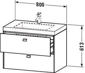 2 выдвижных ящика, верхний ящик, вкл. вырез и крышку для сифона, без перелива, с плоскостью под смеситель, включая выпуск с керамической крышкой, включая малогабаритный сифон