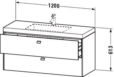 2 выдвижных ящика, верхний ящик, вкл. вырез и крышку для сифона, без перелива, с плоскостью под смеситель, включая выпуск с керамической крышкой, включая малогабаритный сифон