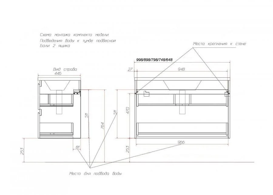 Тумба с раковиной Эстет Bali ФР-00002084 800х450 подвесная 2 ящика