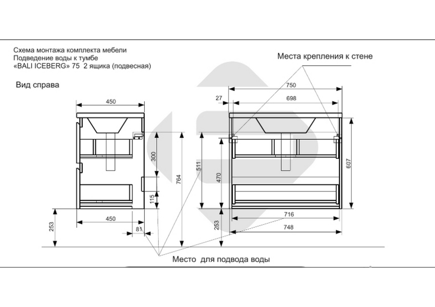 Тумба с раковиной Эстет Bali Iceberg 116 ФР-00018139 750х450 подвесная 2 ящика