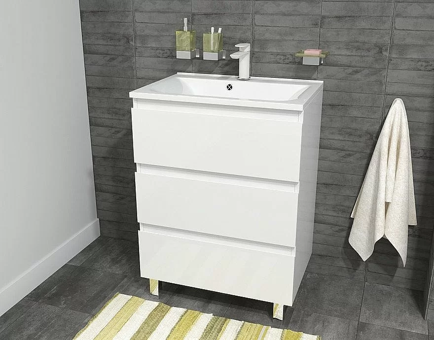 Современный дизайн серии Bali создан для ценителей минимализма. Четкие геометрические формы, бесшумное закрывание ящиков, вместительная тумба с верхним и нижним ящиками создает дополнительное пространство, где будут надежно скрыты от влаги банные принадлежности.