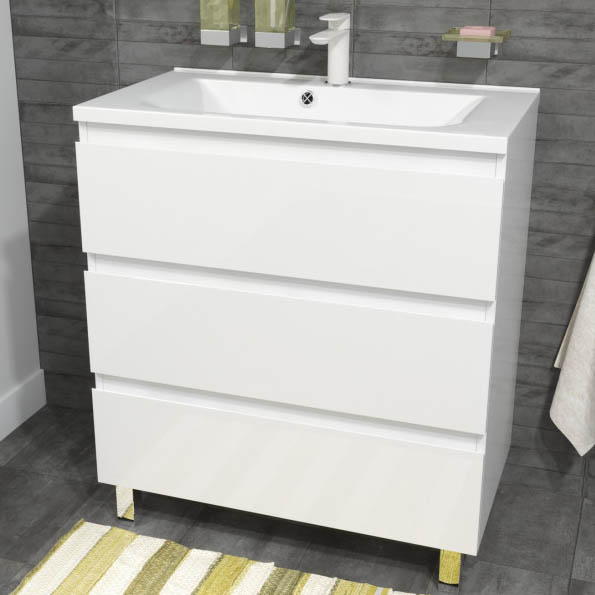 Современный дизайн серии Bali создан для ценителей минимализма. Четкие геометрические формы, бесшумное закрывание ящиков, вместительная тумба с верхним и нижним ящиками создает дополнительное пространство, где будут надежно скрыты от влаги банные принадлежности.
