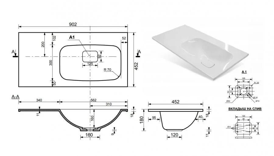 - Раковина Эстет Барселона 90 R (ш/в/г): 900x190x450 мм