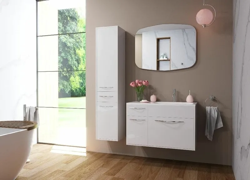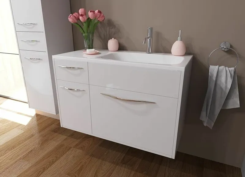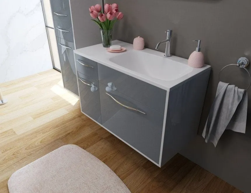Коллекция Barcelona выполнена в стиле модерн. Плавные линии и формы подчеркивают элегантность комплекта, а разнообразие комплектации позволяет использовать мебель в качестве маркера вашего собственного стиля. За счет раковины с крылом коллекция Barcelona более вместительная и удобная. В подвесной тумбе 2 ящика: большой со скрытым хранением (дополнительный выдвижной ящик) и маленький предполагает хранение различных аксессуаров, а также секция с распашной дверцей где можно разместить бытовую химию.
