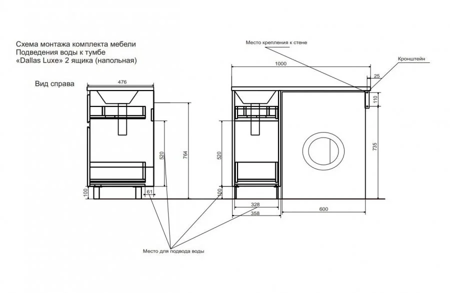Тумба с раковиной Эстет Dallas Luxe ФР-00002315 1000х482 левая, напольная 2 ящика