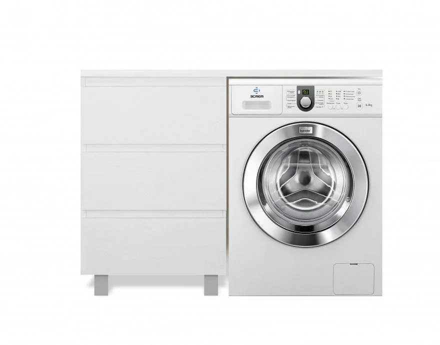 Приоритетом в выборе тумбы с раковиной является площадь ванной комнаты. Функциональная тумба с тремя ящиками решит вопрос для большинства покупателей. Тумба укомплектована раковиной из литьевого мрамора с удобной чашей, стиральная машина устанавливается под столешницей. Три ящика позволят распределить как крупные, так и мелкие вещи.