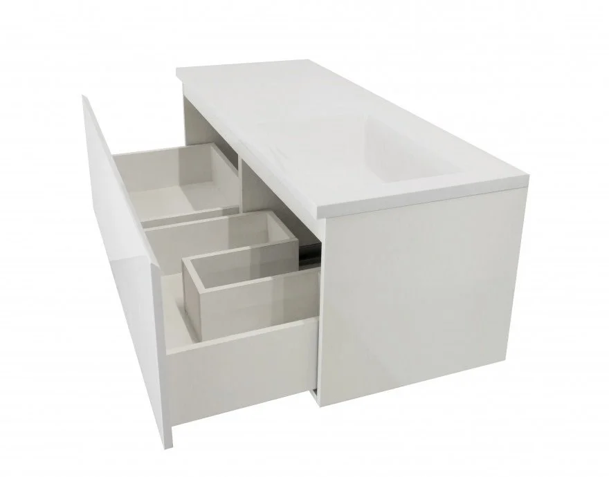 Отличительной особенностью коллекции Dallas Luxe является один большой функциональный ящик, который располагается по всей длине раковины. Ящик разделяется на две зоны, тем самым дает возможность хранения как крупных, так и мелких вещей. Стильная тумба впишется в любой современный интерьер и создаст комфорт в использовании. Подвесная система монтажа позволяет более эффективно использовать пространство, не мешает уборке в ванной комнате, не нарушает раскладку плитки на полу.