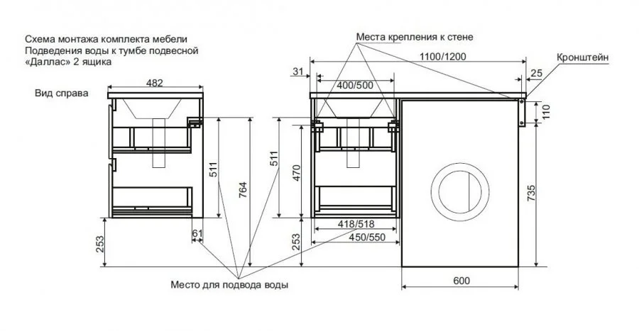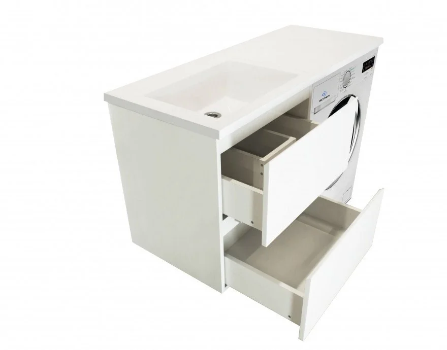 Коллекция мебели для ванной комнаты Dallas Luxe покоряет своей удивительной простой и функциональностью. Современная тумба укомплектована раковиной из литьевого мрамора с удобной чашей. Стиральная машина устанавливается под столешницей, за счет чего экономит место в ванной комнате. В тумбе имеются два ящика. Нижний ящик тумбы – широкий и вместительный – предназначен для крупных предметов, а в верхнем имеется специальная организация пространства, позволяющая хранить мелкие вещи. Подвесная система монтажа позволяет более эффективно использовать пространство, не мешает уборке в ванной комнате.