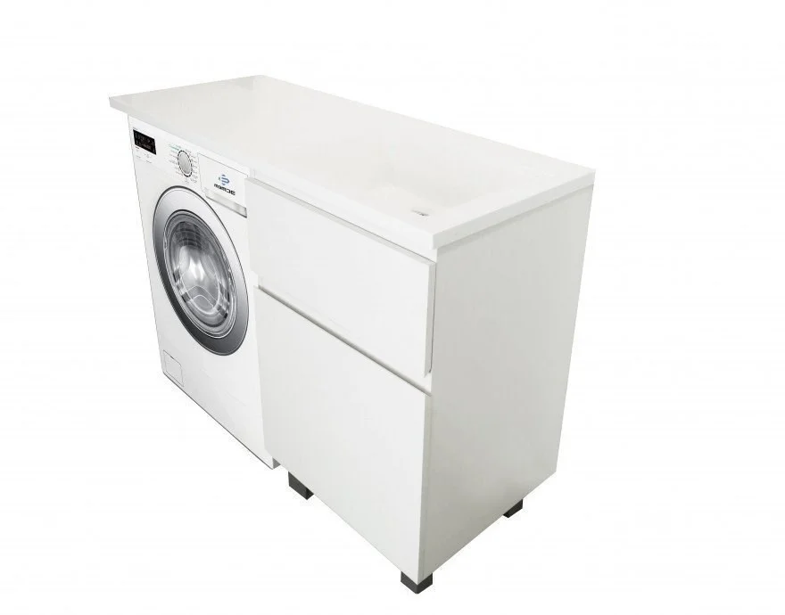 Коллекция мебели для ванной комнаты Dallas Luxe покоряет своей удивительной простой и функциональностью. Стильная лаконичная тумба, укомплектована раковиной из литьевого мрамора с удобной чашей. Стиральная машина устанавливается под столешницей, за счет чего экономит место в ванной комнате. В тумбе имеются два ящика. Нижний ящик тумбы – широкий и вместительный – предназначен для крупных предметов, а в верхнем имеется специальная организация пространства, позволяющая хранить мелкие вещи.
