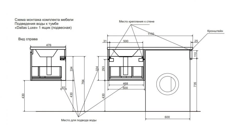 Коллекция мебели для ванной комнаты Dallas Luxe покоряет своей удивительной простой и функциональностью. Тумба укомплектована раковиной из литьевого мрамора с удобной чашей, стиральная машина устанавливается под столешницей. Широкий и вместительный ящик предназначен для крупных предметов. Подвесная система монтажа позволяет более эффективно использовать пространство, не мешает уборке в ванной комнате.