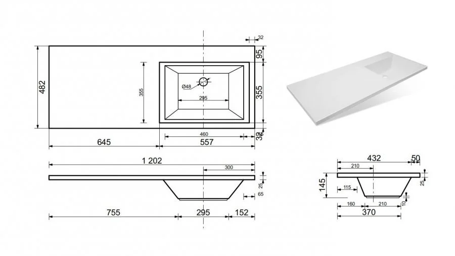 Тумба с раковиной Эстет Dallas Luxe ФР-00001929 1200х482 правая, подвесная 2 ящика