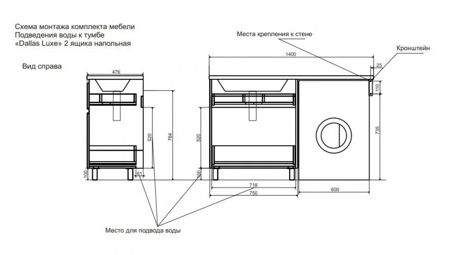 Коллекция мебели для ванной комнаты Dallas Luxe покоряет своей удивительной простой и функциональностью. Стильная лаконичная тумба, укомплектована раковиной из литьевого мрамора с удобной чашей. Стиральная машина устанавливается под столешницей, за счет чего экономит место в ванной комнате. В тумбе имеются два ящика. Нижний ящик тумбы – широкий и вместительный – предназначен для крупных предметов, а в верхнем имеется специальная организация пространства, позволяющая хранить мелкие вещи.