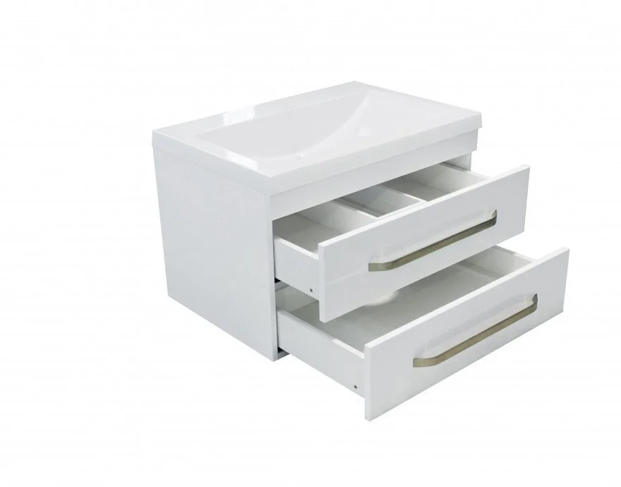 Серия Monaco выполнена в стиле хай-тек. Минимализма и четкости форм в ванной комнате поможет добиться именно этот стиль. Линии простые, строгие, жесткие. Тумба имеет два выдвижных ящика и удобные хромированные ручки.