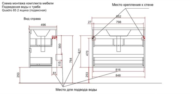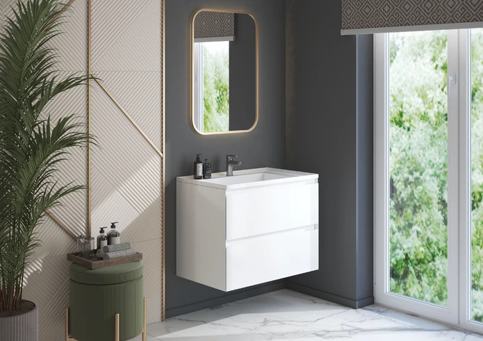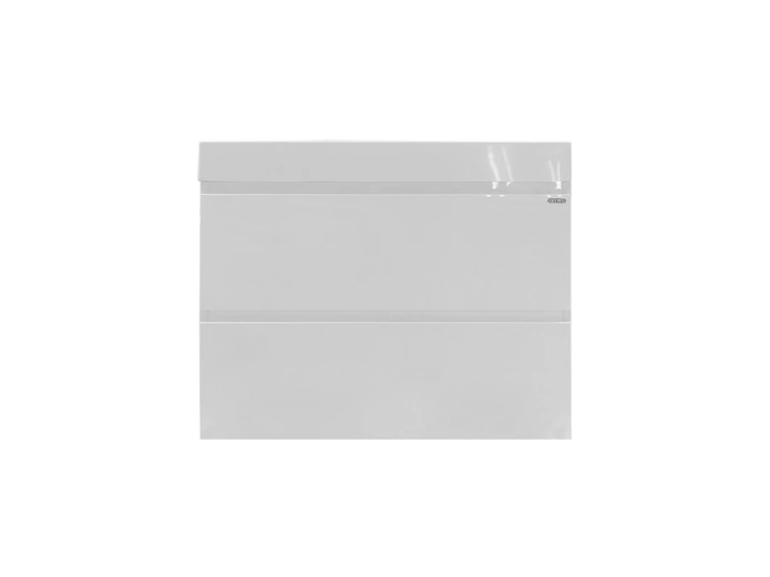 Подвесная тумба укомплектована раковиной с вкладышем из литьевого мрамора, которые имеют прямоугольную форму, тем самым придают объем и изысканный внешний вид, а толщина борта дополняет образ. Тумба имеет два вместительных ящика, что позволяет создать порядок в ванной комнате, а скошенные фасады за место ручек создадут удобство в повседневном использовании.