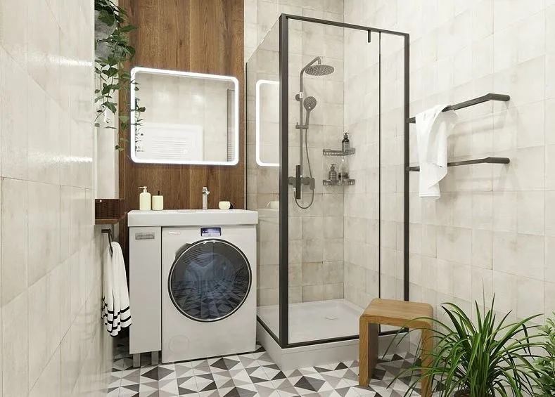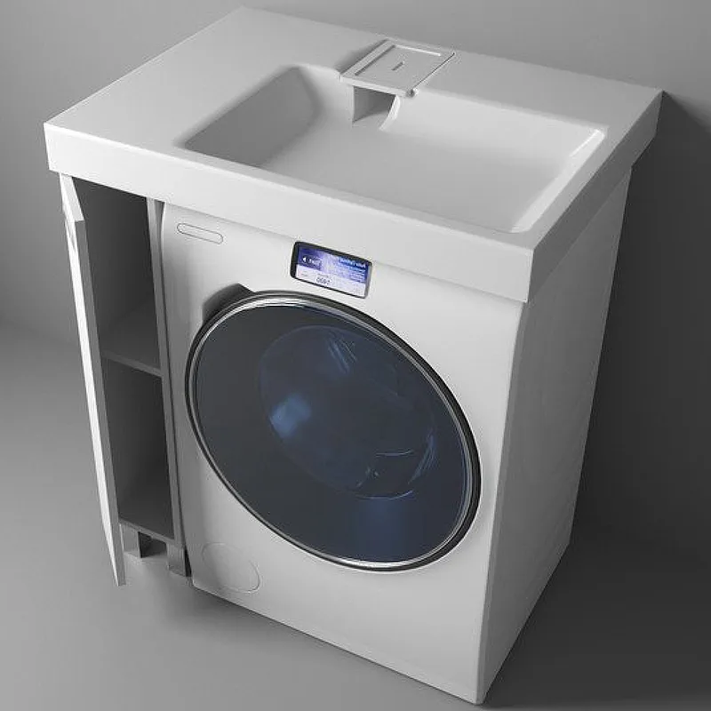 Простые и четкие линии тумбы идеально впишутся в интерьер в стиле «минимализм», а компактная раковина из литьевого мрамора установленная над стиральной машиной, позволяет сэкономить место в ванной комнате.