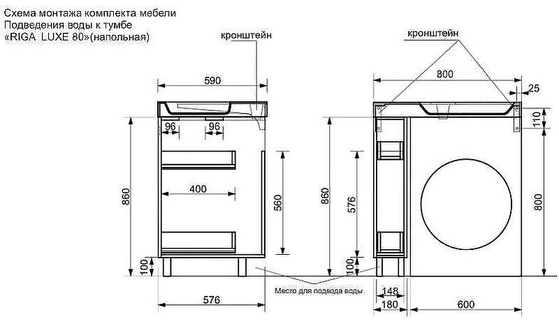 Раковина комплектуется тумбами на выбор - модуль с выдвижным ящиком (бутылочницей), либо модуль с полкой и распашной дверцей. На фасаде распложена врезная ручка, цвет «хром».