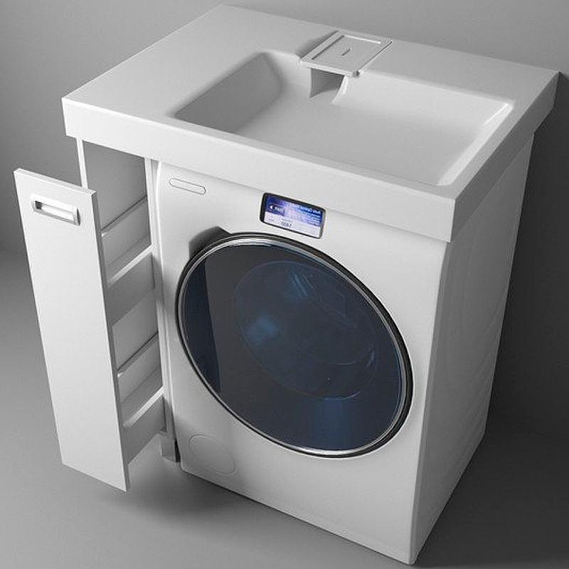 Простые и четкие линии тумбы идеально впишутся в интерьер в стиле «минимализм», а компактная раковина из литьевого мрамора установленная над стиральной машиной, позволяет сэкономить место в ванной комнате.
