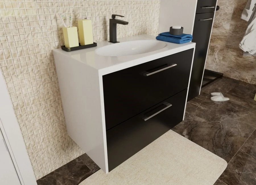 Коллекция Vegas разработана в современном стиле с учетом комфорта и функциональности. За счет вкладных фасадов мебель возможно выполнить в двухцветном исполнении абсолютно в любом сочетании (по каталогу RAL). Vegas дает возможность исполнить индивидуальное решение. Тумба укомплектована раковиной из литьевого мрамора с геометрическими формами. Сама раковина прямоугольная, чаша овальная, что дает комплекту дополнительную изысканность. В тумбе располагаются 2 ящика, максимально удобные для хранения и функционального размещения.