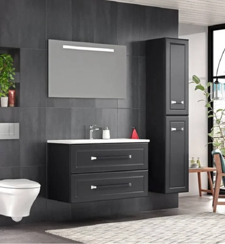 и современные формы дополнят любую ванную комнату. Накладная раковина из сантехнического фарфора идет в комплекте. Материал фасада: МДФ.