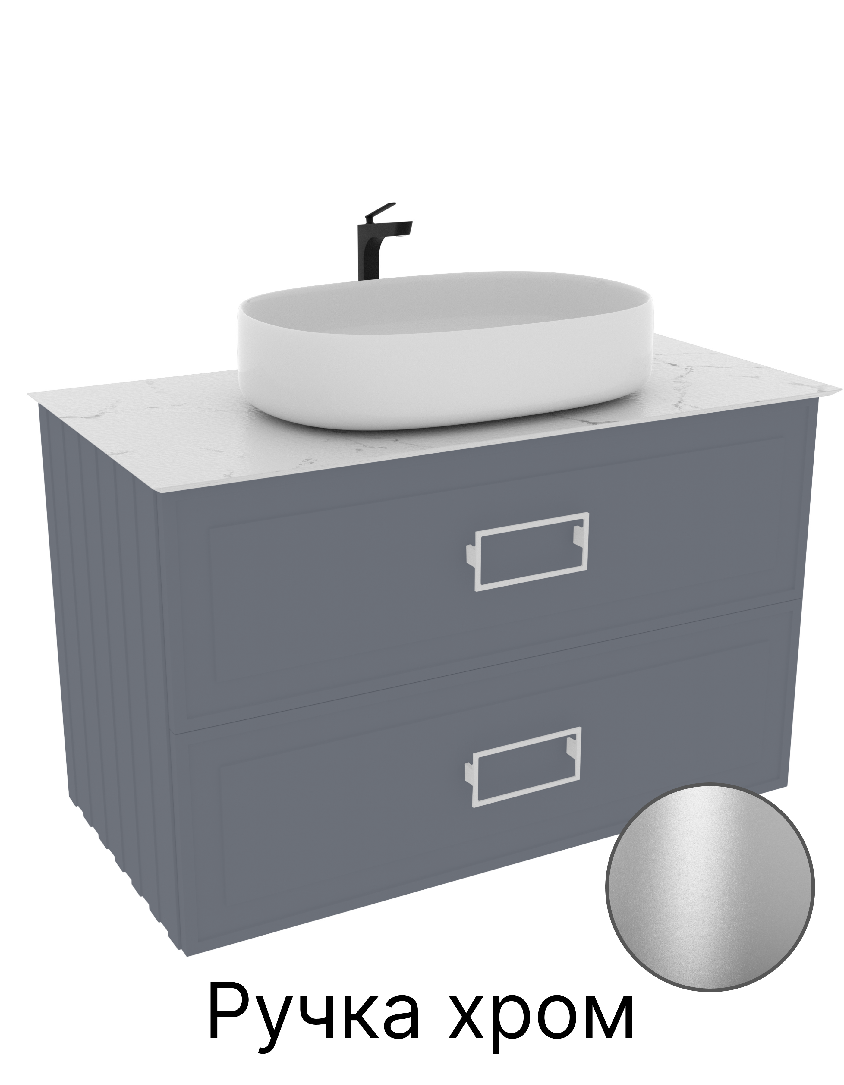 Тумба с раковиной и столешницей La Fenice Cubo TWIN Blu Grigio 100 NFNC-01-CUB-BG-100-2-1-M-GG синяя матовая, ручка хром