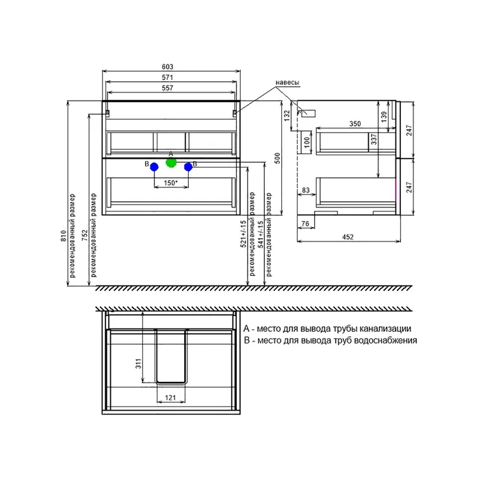 • Материал фасадов – МДФ с покрытием ПВХ-пленкой. Она разработана для использования в помещениях с высокой влажностью и сохранит первоначальный вид мебели надолго (при должном уходе). Материал боковин – МДФ.