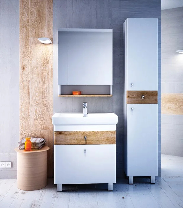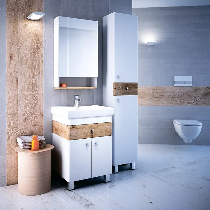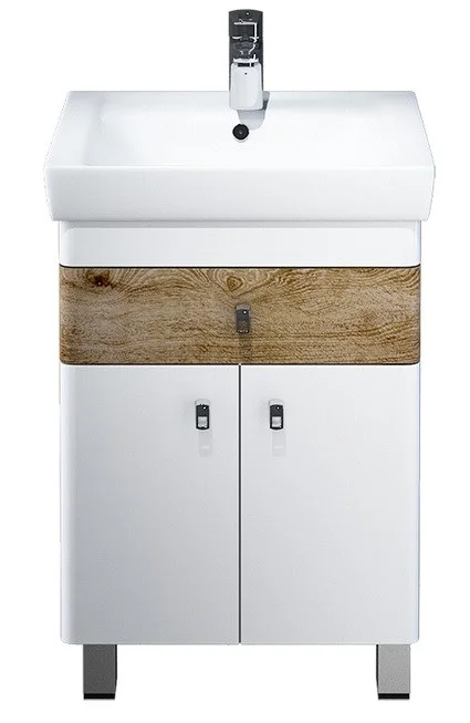 Тумба с раковиной IDDIS Carlow 55 напольная белая/под дерево (CAR55W2i95K)