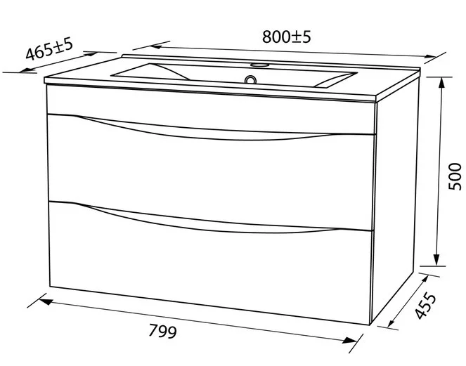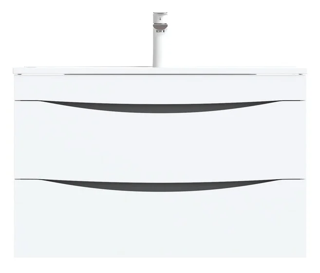 Тумба с умывальником для ванной комнаты, подвесная. Ширина 80 см. Фасад МДФ в эмали, боковины ЛДСП. Два ящика,интегрированные ручки, перекатной организатор, пластиковый ограничитель под сифон. Плоский керамический умывальник. Упаковка: картон, пленка, пенопластовые уголки.