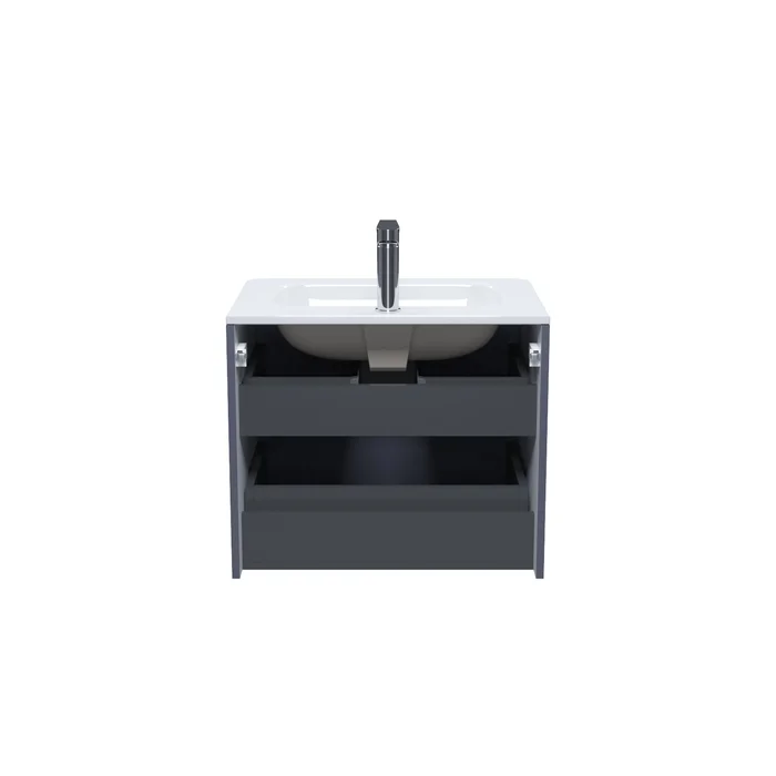 Компактная подвесная тумба с плоским умывальником Edifice стильного темно-серого цвета – воплощение современного минимализма. Мягкие линии корпуса в сочетании с удобными интегрированными ручками выглядят свежо и актуально. Смотрится аккуратно, легко и не усложняет процесс уборки в ванной благодаря подвесной конструкции.