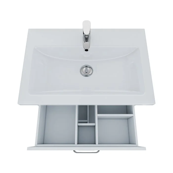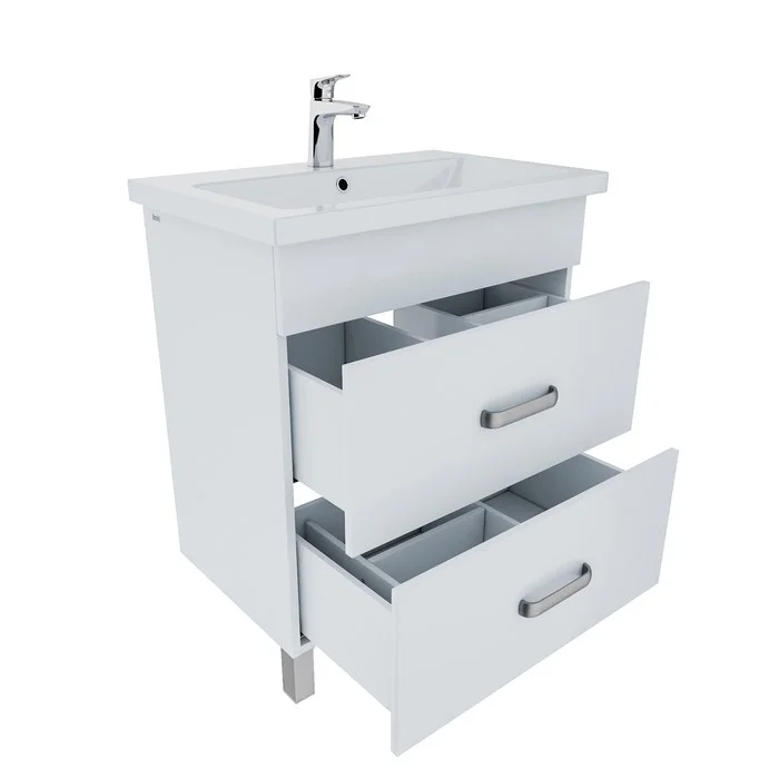 • Фасад и корпус тумбы изготовлены из белого МДФ и ЛДСП, пригодных для использования во влажных помещениях (при соблюдении правил эксплуатации и ухода), и покрыты несколькими слоями грунта и эмали. Благодаря этому мебель надолго сохранит свой первоначальный вид – как в день покупки.