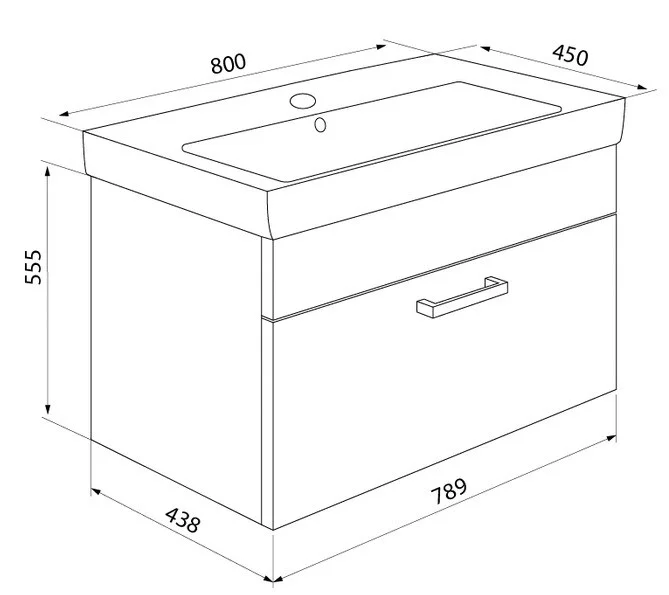 Размеры умывальника: 450х800 мм (ДхШ).
