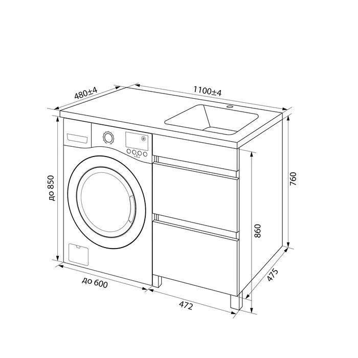 Тумба с раковиной Iddis Optima Home 110 см (OPH11RBi95K) напольная для стиральной машины с ящиками,
