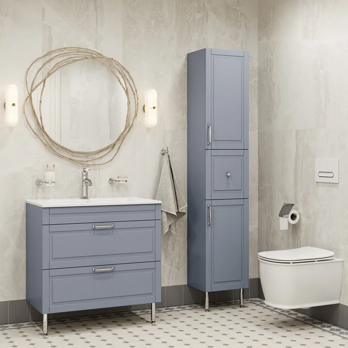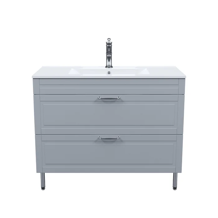 Вместительная напольная тумба Oxford изысканного светло-серого цвета – модное сочетание классического стиля и стиля ретро. Она органично впишется в интерьер благодаря элегантному фрезерованному фасаду и узнаваемому дизайну. В комплекте плоский эргономичный умывальник.