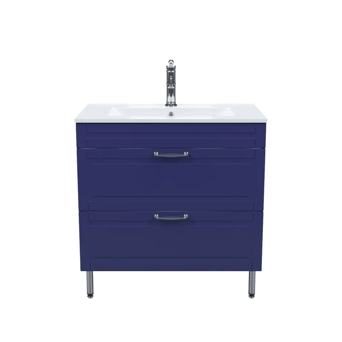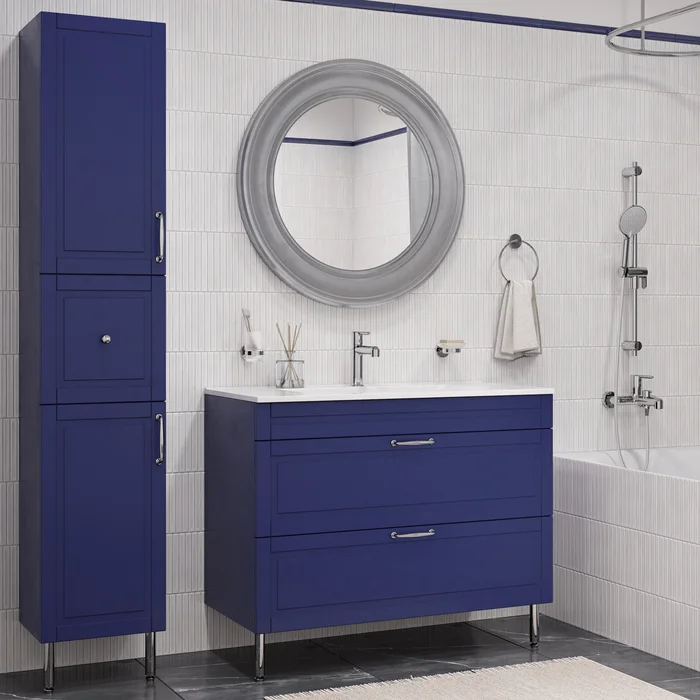 Напольная тумба Oxford в красивом синем оттенке – модное сочетание классического стиля и стиля ретро. Она органично впишется в интерьер благодаря элегантному фрезерованному фасаду и узнаваемому дизайну. В комплекте плоский эргономичный умывальник.