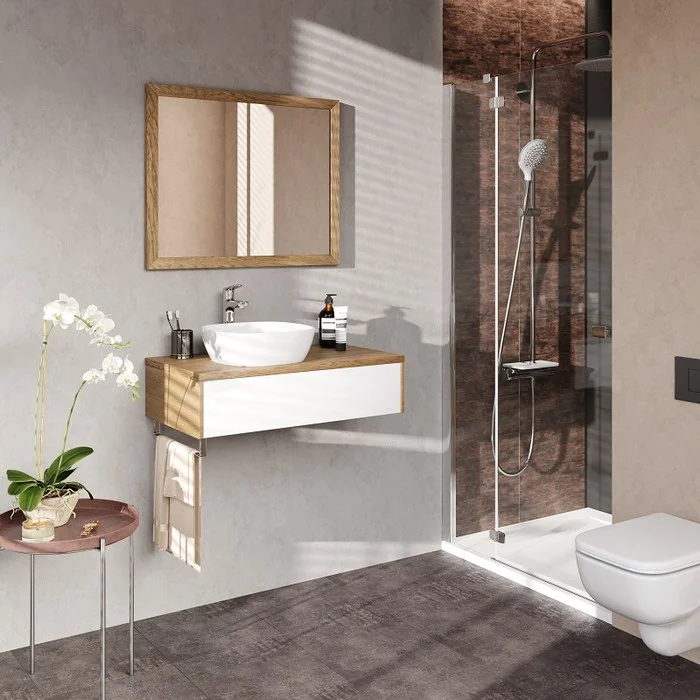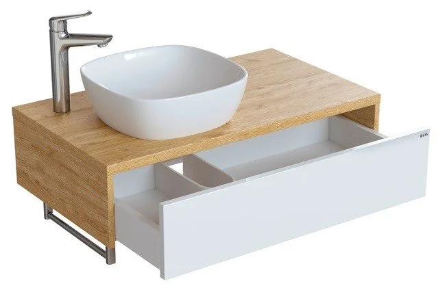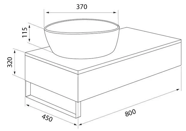 Тумба с накладным умывальником для ванной комнаты, подвесная. Размеры: 450х800х250 мм (ДхШхВ).