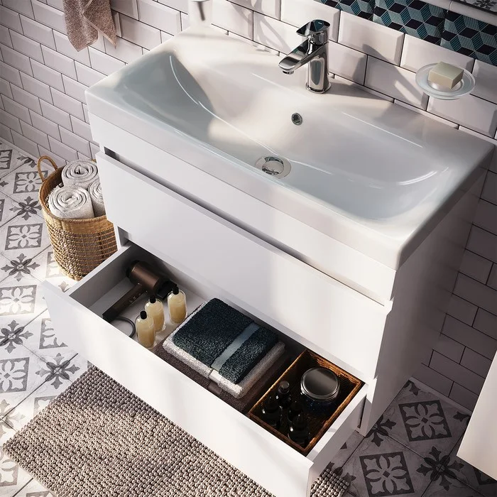 Тумба с раковиной Iddis Zodiac 80 см (ZOD8CB0i95K) подвесная с ящиками, белая