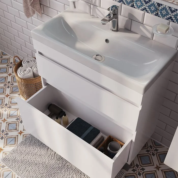 Тумба с раковиной Iddis Zodiac 80 см (ZOD8CBFi95K) напольная с ящиками, белая