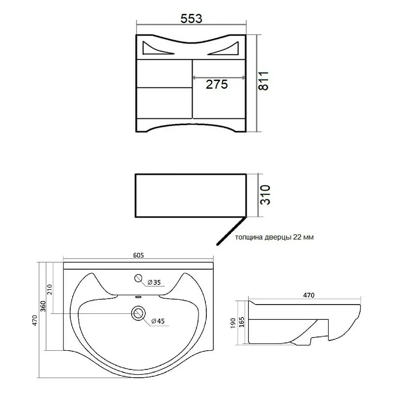 Тумба с раковиной Orange Classic 60 Белая F7-60TU3