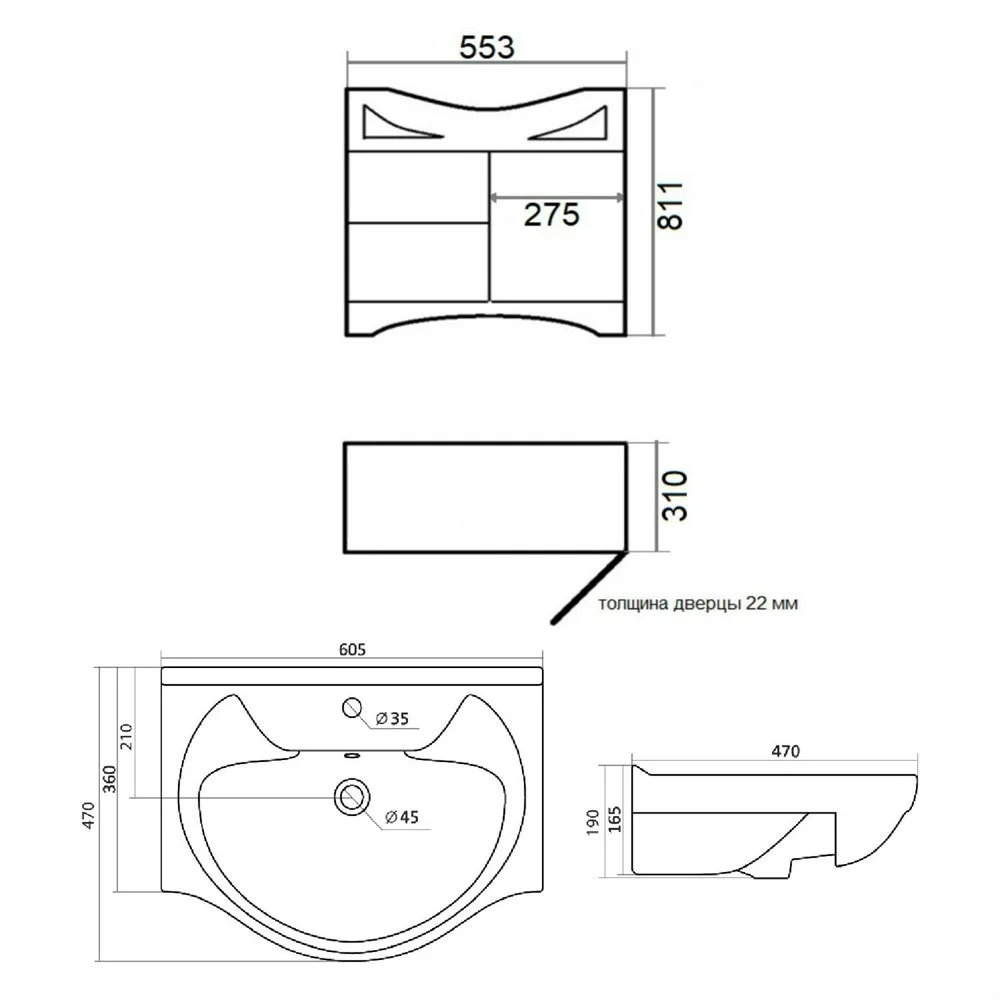 тумба, раковина, полочка, к-т фурнитуры, инструкция