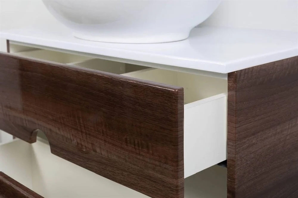 Корпус: МДФ, два ящика, механизмы полного выдвижения с доводчиками, пленка ПВХ, цвет - орех. Отверстстие под смеситель делается самостоятельно в любом удобном месте.