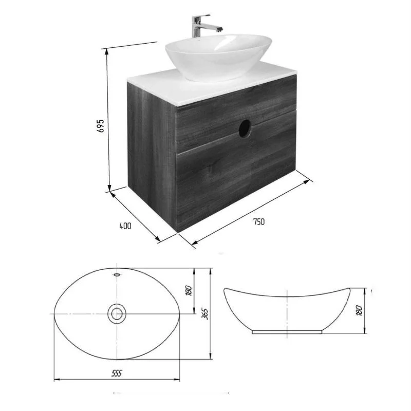 Раковина: Гамма 560, накладная, 560х360 мм.