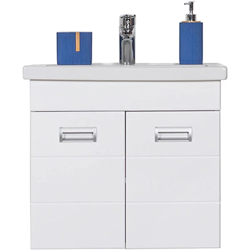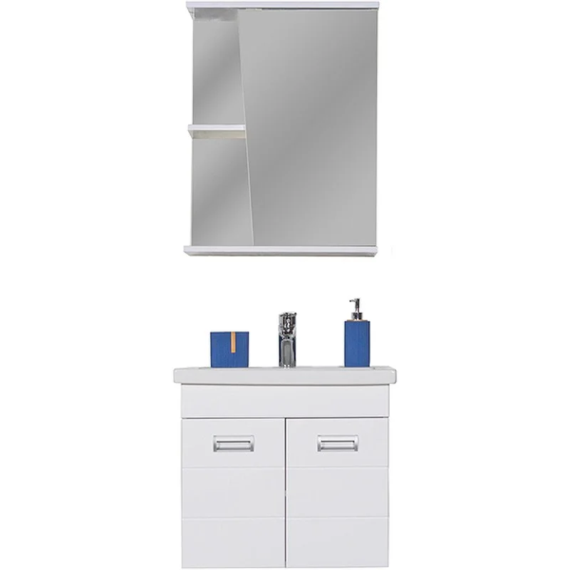 Корпус: МДФ, 2 распашных дверки, фасад с фрезой, доводчики, пленка ПВХ, цвет - белый глянец