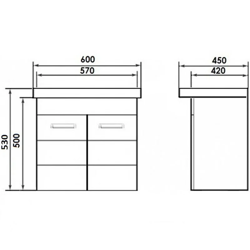 Габариты с учетом раковины (ШхВхГл): 60х61х45 см