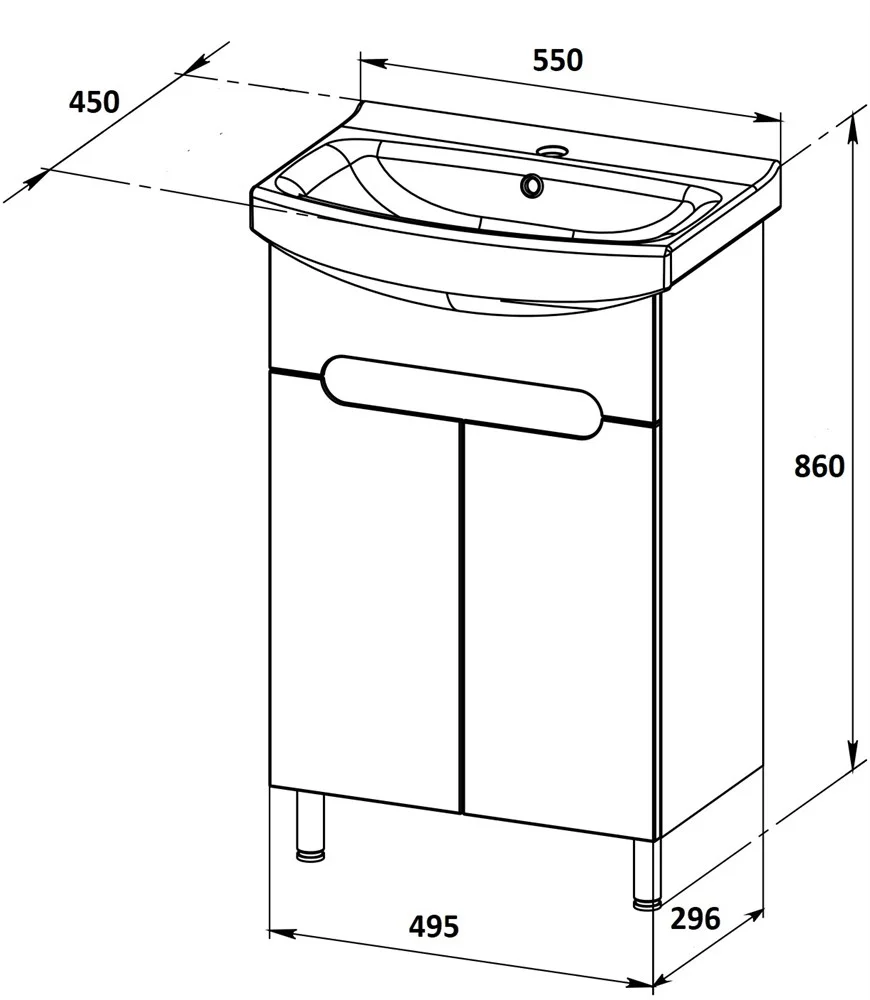 тумба, раковина, ножки 2 шт, полка, к-т креплений, инструкция